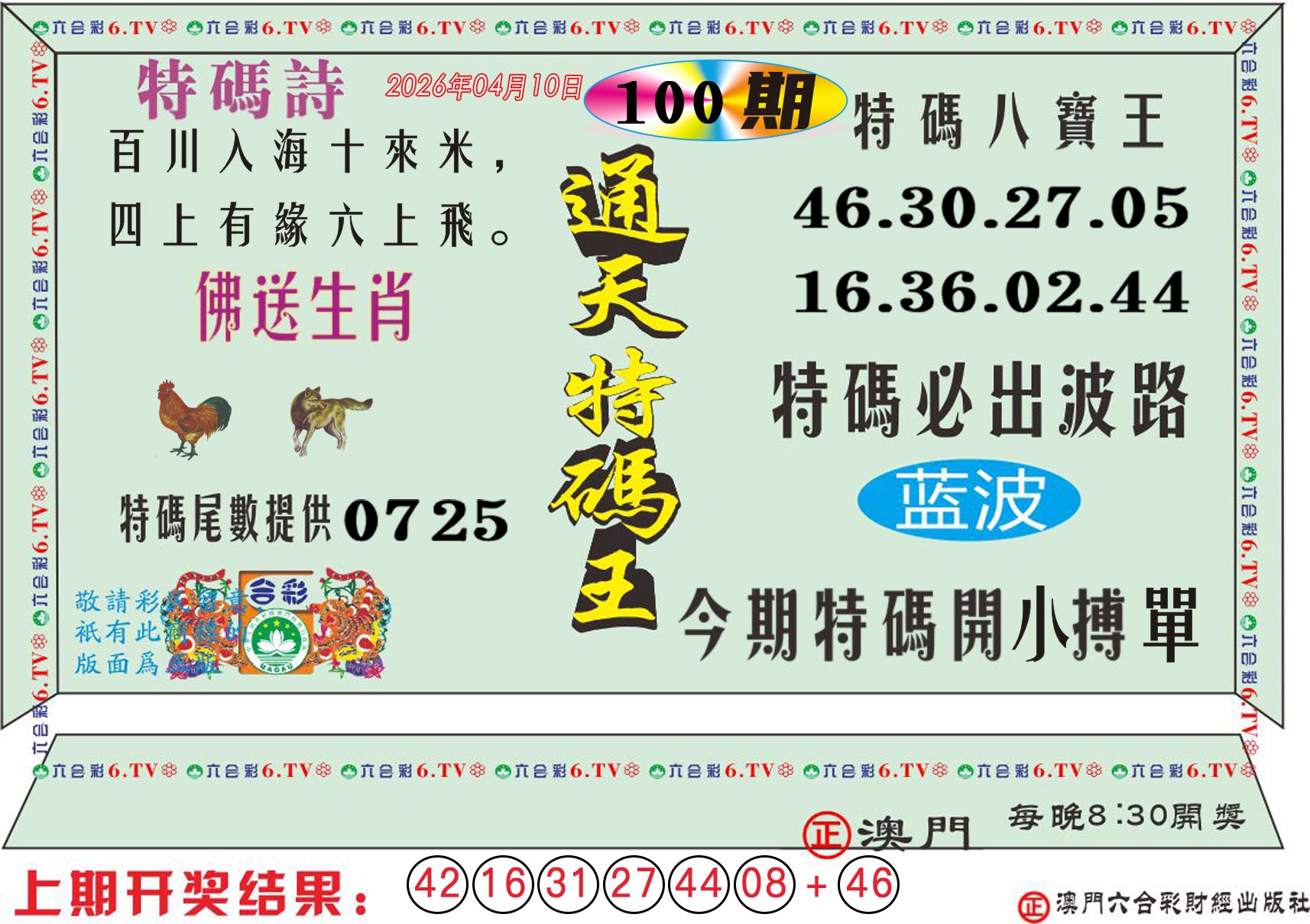 【特码寻宝诗】二零四六中間看,五七不去難得霸。